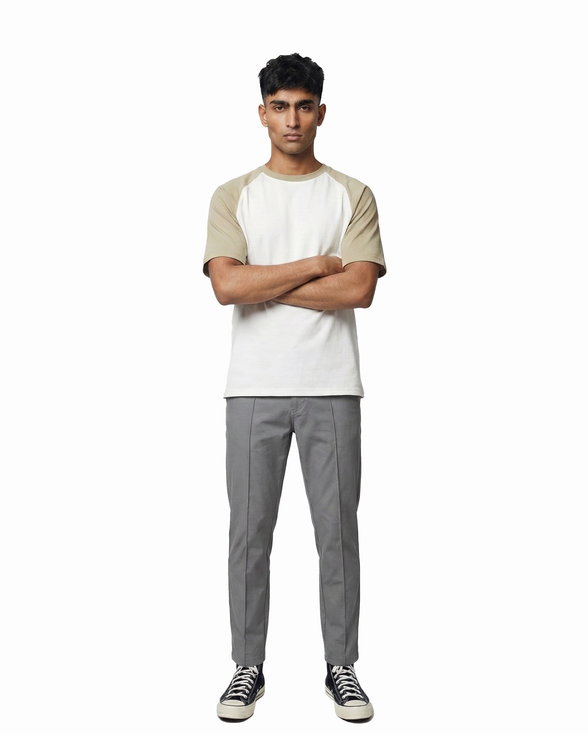 Drop Shoulder Raglan T-Shirt – White & Beige