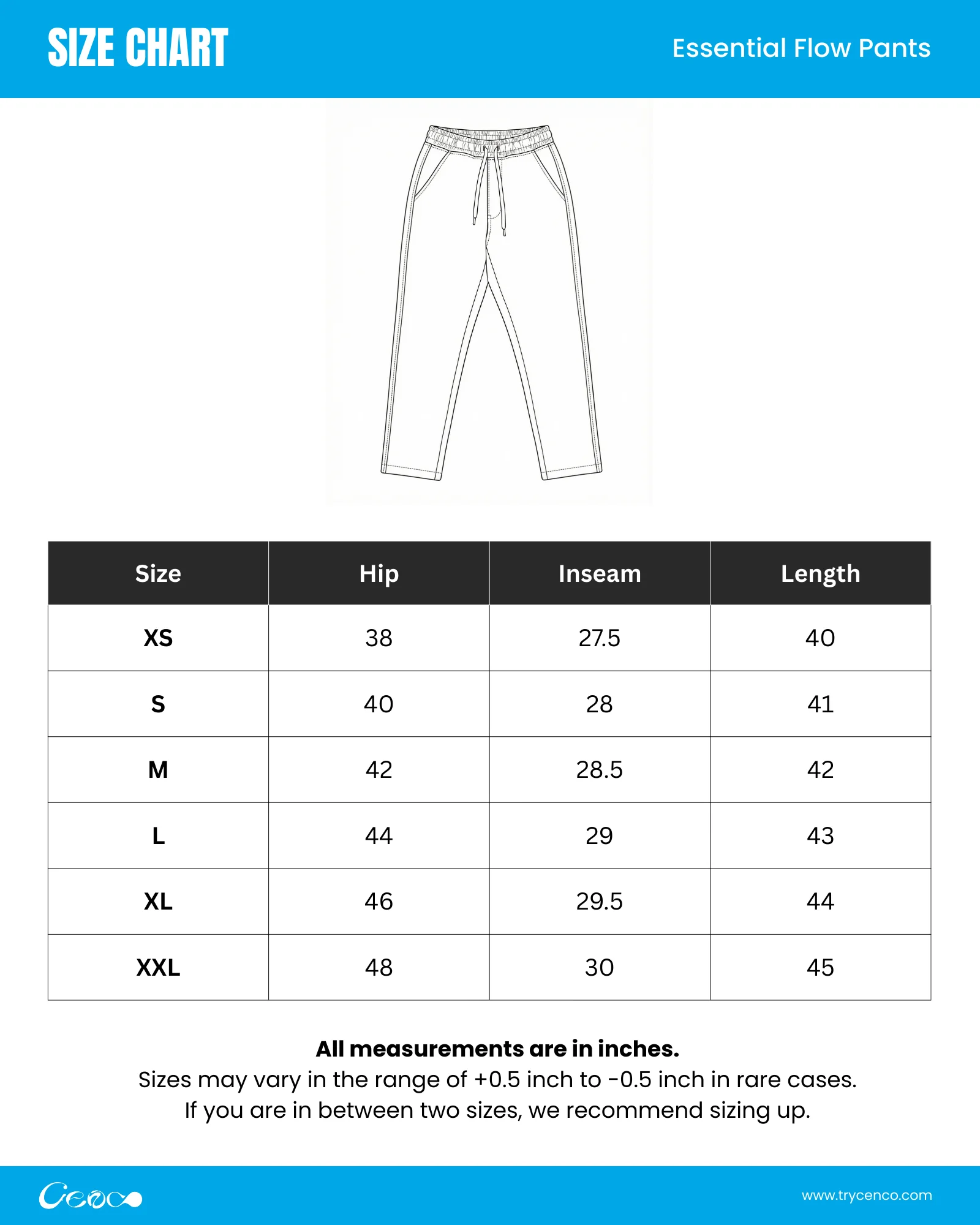 Size Guide - Essential Flow Pants